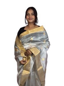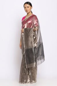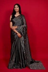 Black & Silver Tissue Silk Chanderi Saree | ChanderiThread