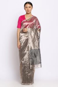 Silver Tissue Silk Chanderi Saree | ChanderiThread