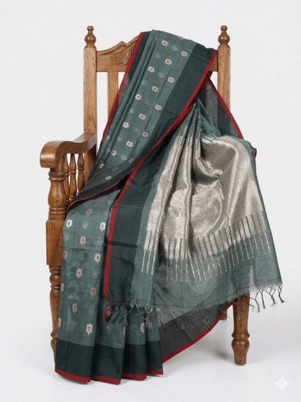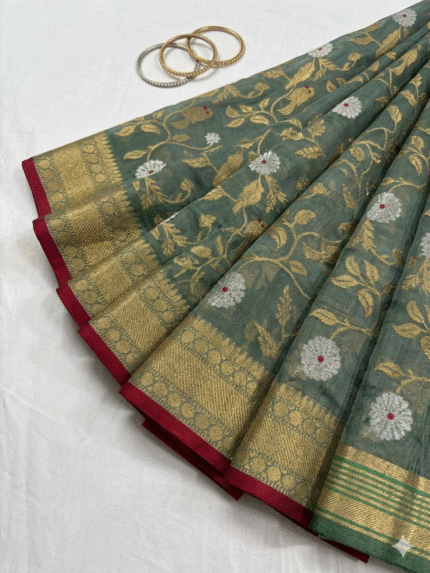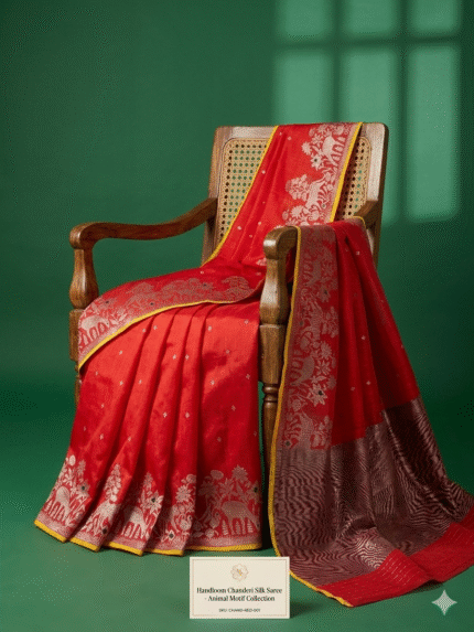 This saree represents the timeless beauty of Chanderi silk sarees India is known for, making it a perfect addition to every saree collection.