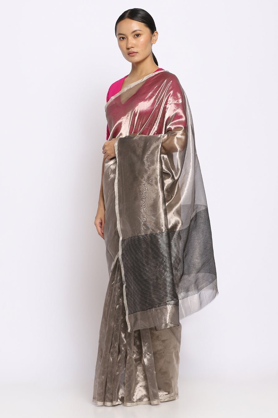 Silver Tissue Silk Chanderi Saree